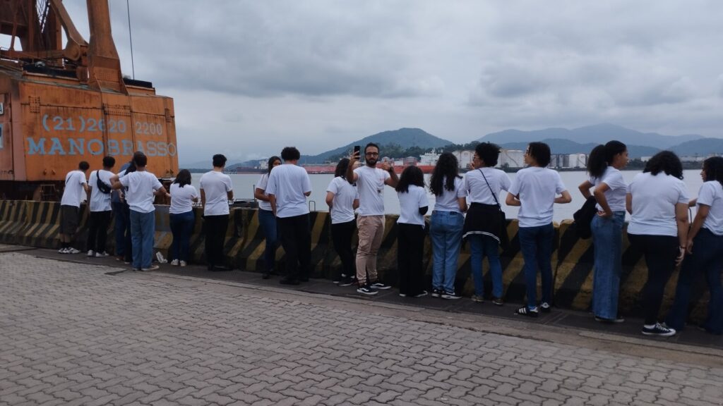 Em seguida, visitamos o próprio Porto de Santos, uma visão imponente de contêineres gigantes, navios de todas as partes do mundo e a movimentação incessante de cargas. Ouvir os sons dos guindastes, observar a dança coreografada dos trabalhadores portuários e sentir a energia vibrante do local foi algo que ficará gravado em nossas memórias para sempre.