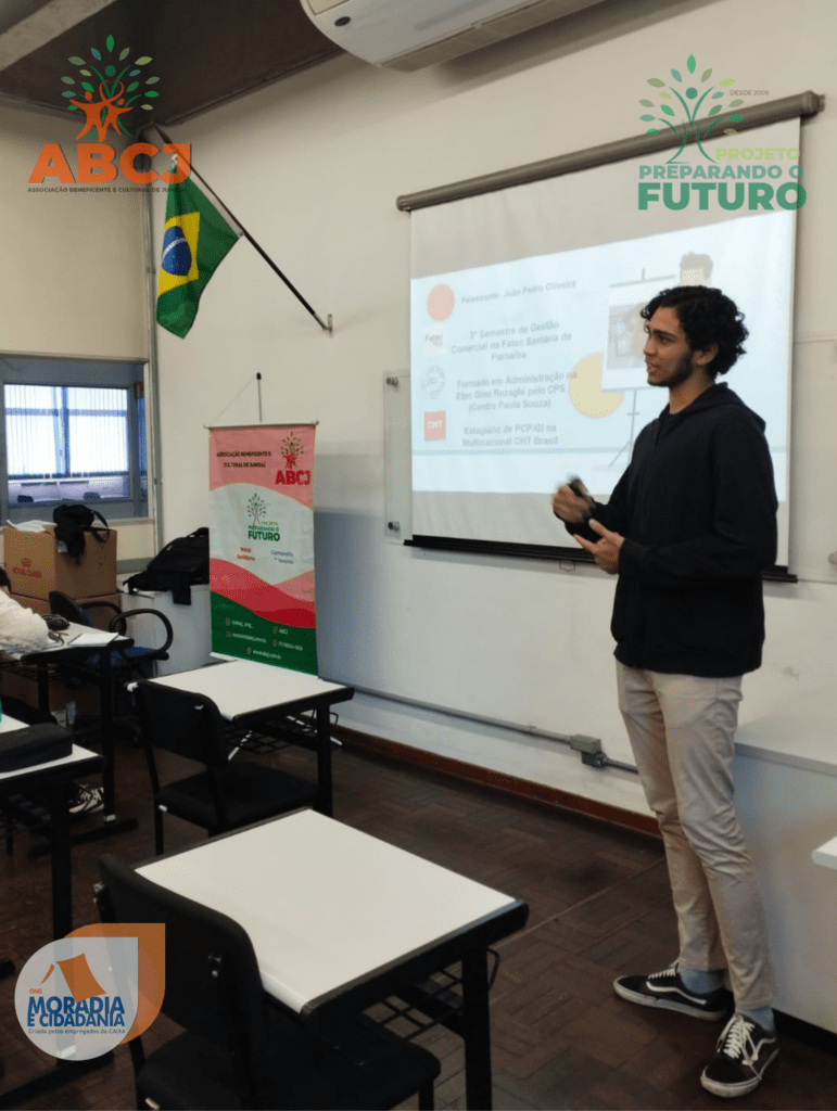 No último sábado, a Associação dos Alunos da ABCJ (Associação Beneficente e Cultural E Religiosa Filhos De Flaviana Bianc ) teve a honra de receber João, um ex-aluno que retornou à instituição para compartilhar sua jornada profissional e suas valiosas experiências de estágio. A palestra, repleta de insights e conselhos, proporcionou uma inspiradora troca de conhecimentos entre o ex-aluno e os atuais estudantes.