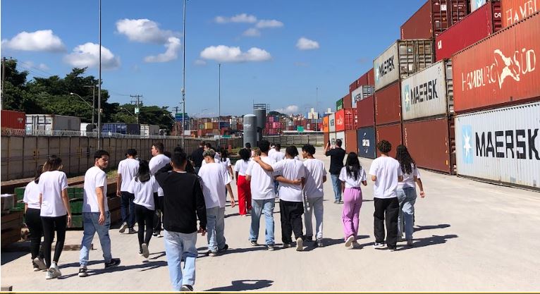 Durante a visita, os alunos puderam conhecer de perto cada etapa do processo logístico, desde a chegada até a saída das mercadorias, passando pelos diversos modais de transporte utilizados, como ferroviário, rodoviário e aéreo.